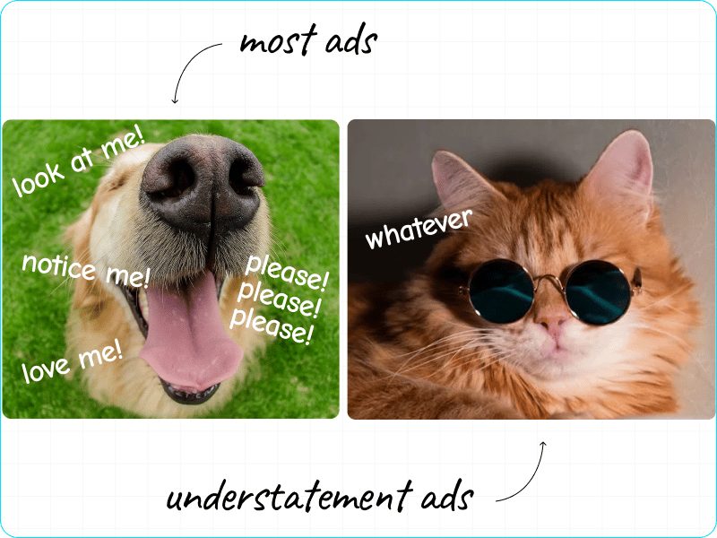 If most ads are like overexcited golden retrievers, understatement ads are cats.